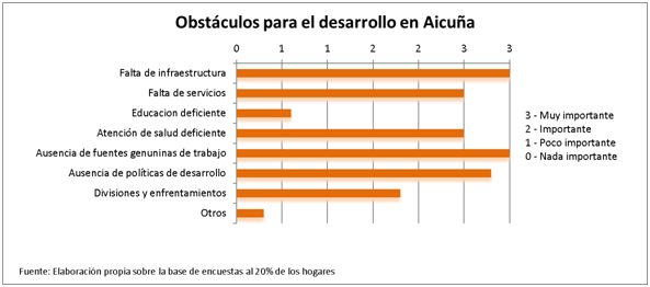 La falta de servicios y de políticas de desarrollo son los problemas que siguen en importancia a los mencionados para los habitantes del pueblo.