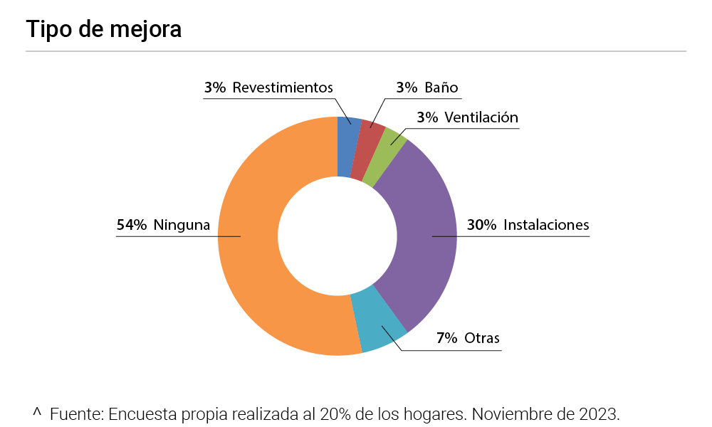 La totalidad de las casas de las personas encuestadas está en buen estado de conservación. Aun así, un 47% de personas haría una mejora en su vivienda. Un 30% de los encuestados ampliaría su casa y un 16% haría mejoras menores en su vivienda. De las familias que harían mejoras en su vivienda, un 85% tomaría un crédito para hacerlo. Casi de manera unánime, el 53% de las personas que no haría mejoras en la casa, toma esa decisión por no ser propietario de la misma o por tener avanzada edad.