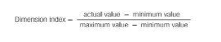 El cálculo de los índices que surgen de dicho análisis se realiza de modo análogo al cálculo de los índices de desarrollo humano tal como se especifica en las notas técnicas “Calculating the Human Development Index” del Programa para el Desarrollo de Naciones Unidas. Tal y como se hace en este informe, disponible en http://hdr.undp.org/en/media/HDR_20072008_Tech_Note_1.pdf, se identifican las dimensiones a medir, y luego una variable que represente la dimensión a ser medida. Se calculan porcentajes, u otras medidas continuas que luego son convertidas a una cifra (o índice) comprendido entre el numero 0 y el 1, denotando mayor incidencia de la cualidad a medir para valores más altos del índice. Antes de ser convertidos, se fijan valores máximos y mínimos para calcular los índices de acuerdo a la siguiente fórmula: